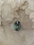 La pierre est en forme de goutte ovale, percée, avec un trou de chaque côté pour y mettre une chaîne ou un cordon pour en faire un collier.