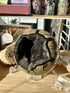 Cette pièce est fabuleuse grâce à sa forme de sphère géode et son intérieur de cristaux noir ressemblant à du velour.
